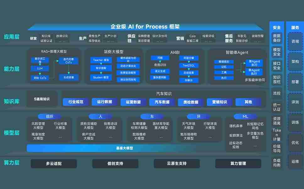 尊龙集团问学智车解决方案是一套基于AI技术的汽车行业智能化系统,,覆盖从底层算力到顶层AI应用的全栈方案。。方案由算力层、、模型层和应用层组成:算力层,,,方案支持多种一体机配置,,具备云端灵活部署、、、多云适配以及动态优化计算资源的能力;模型层,,,,尊龙集团问学平台版提供了企业级AI应用一站式构建与管理平台,,,支持基于后训练强化技术的汽车企业专属模型的训练、、、评测和运营;应用层,,,,尊龙集团问学DeepSeek版提供包括超级员工、、智能招采、、智能营销、、、、智能客服、、、、AI for BI等一系列解决方案,,,,可助力汽车行业实现数字化转型,,让管理更智能、、响应更敏捷。。。